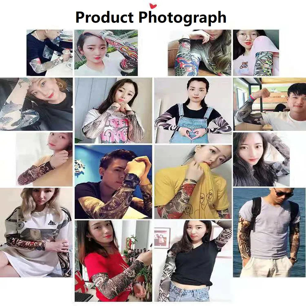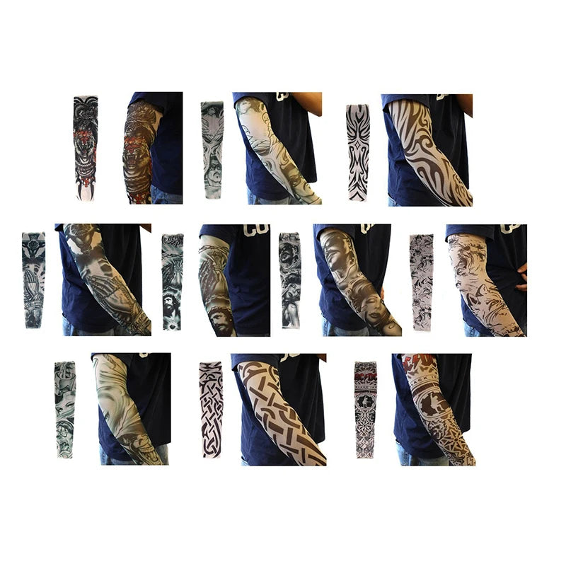 1PCS Men Long Fake Warmers Summer Tattoo Sleeves Sun Protection Cover Outdoor Gloves Driving Ice Silk Arm Sleeves Women