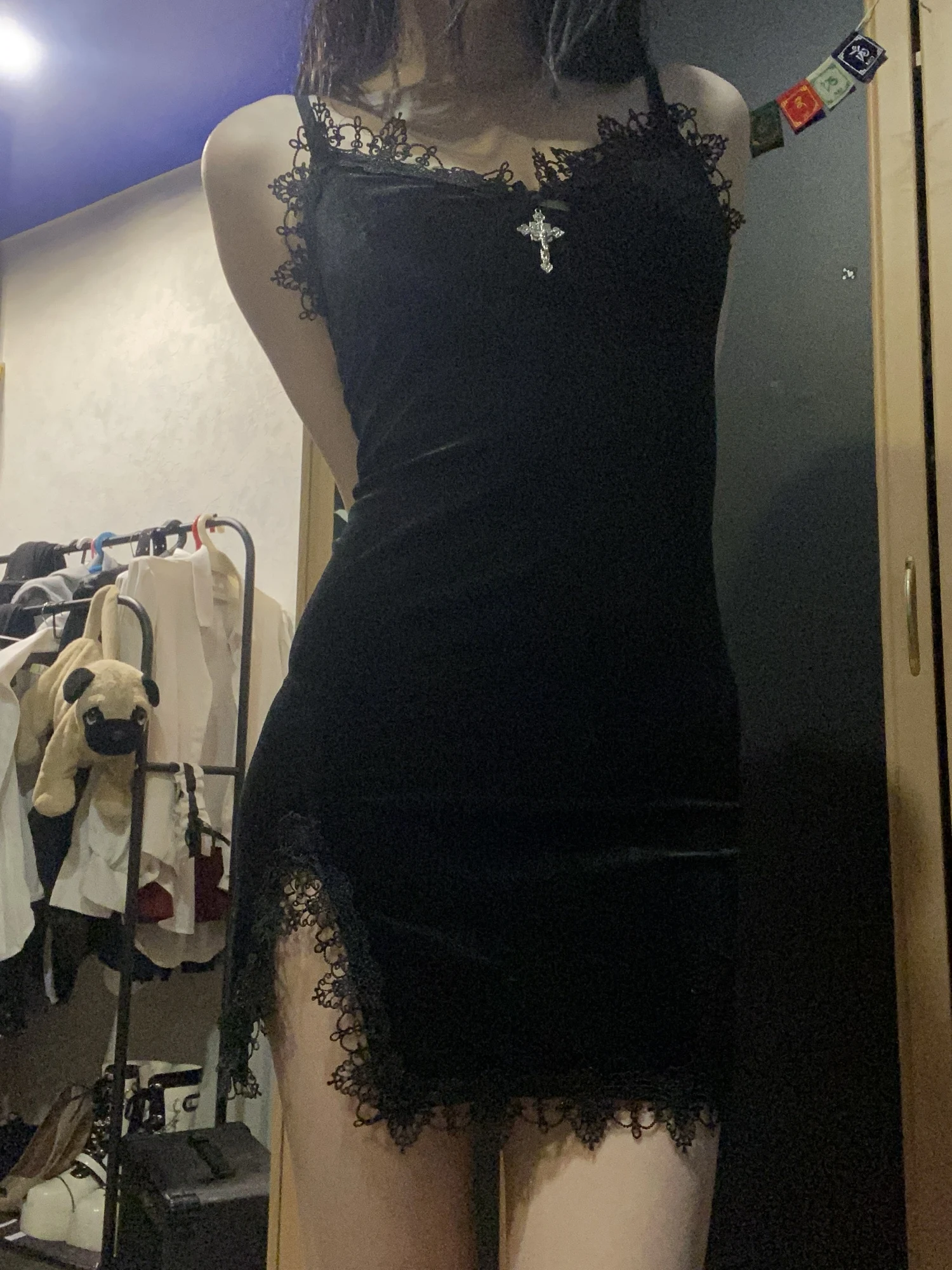 Dark Cross Black Mini Dress Vintage Sexy Spaghetti Strap High Waist Slit Dresses Goth Party Club Women Dress